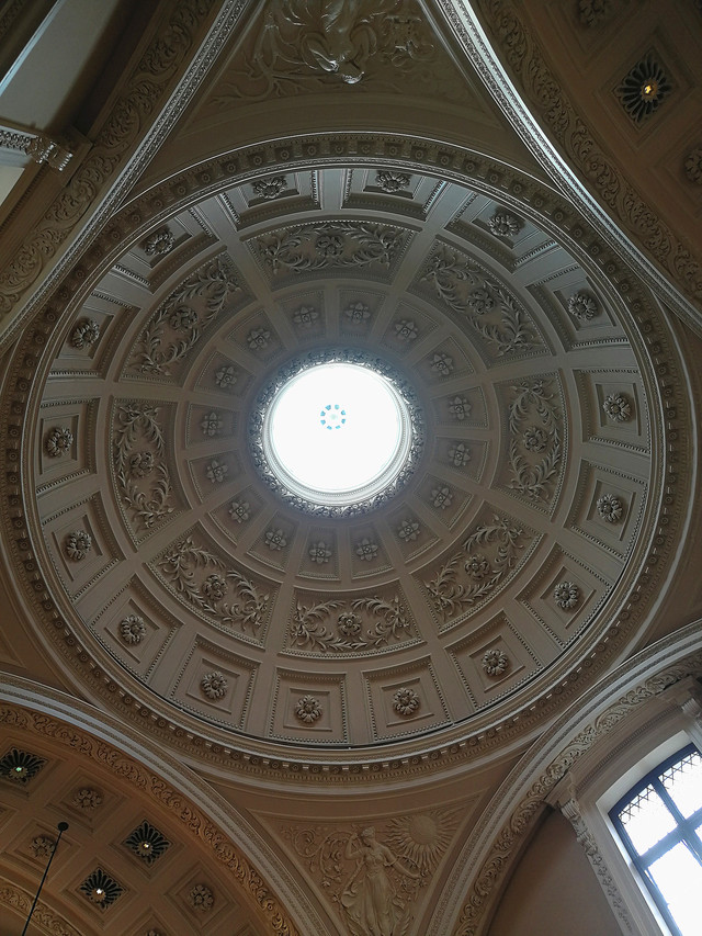 维多利亚式接待大厅。饰有四季美景图画的雅致穹顶