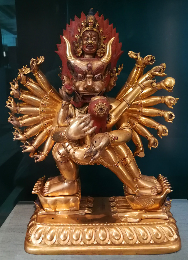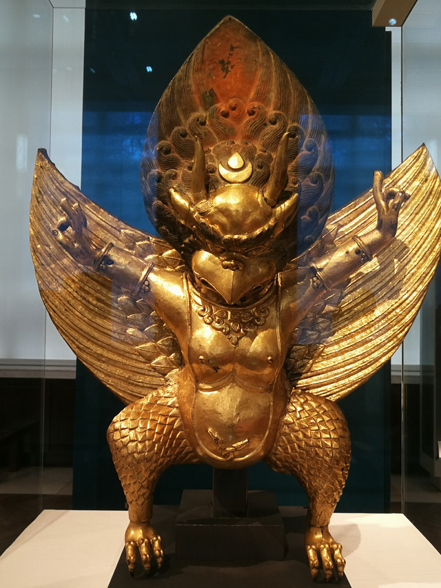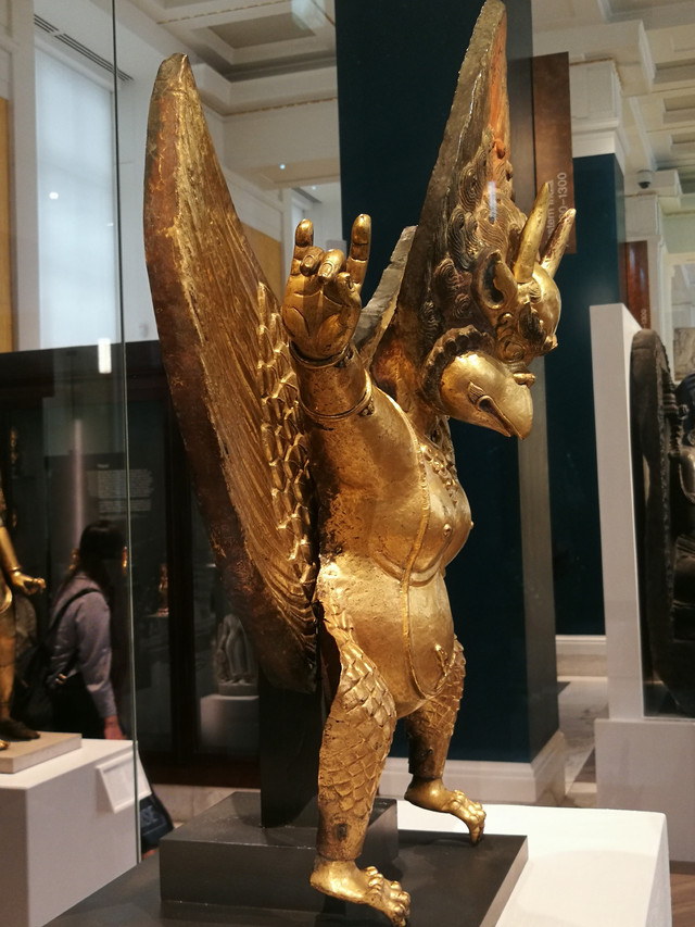 金翅鸟铜像:是一个在佛教及印度教中广为流传的鹰形护法神;约公元1800年产于西藏,收藏于1992年。