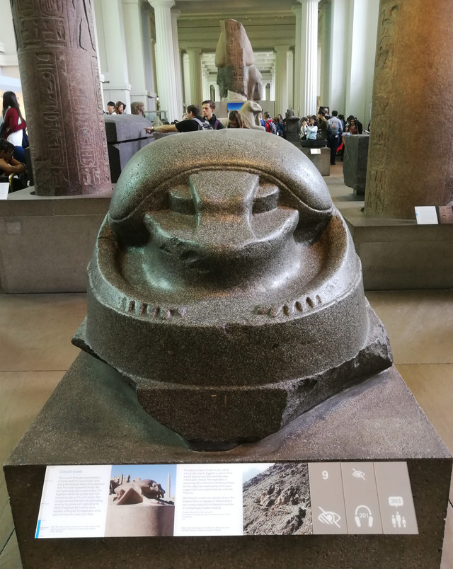 阿孟霍特普(Amenhotep)三世头像:第十八王朝一位法老,约公元前1390年。由红色花岗岩制成,头像高2.28米,戴着双王冠。来自卡纳克的穆特神庙附近的昆斯贝克霍特神庙前。