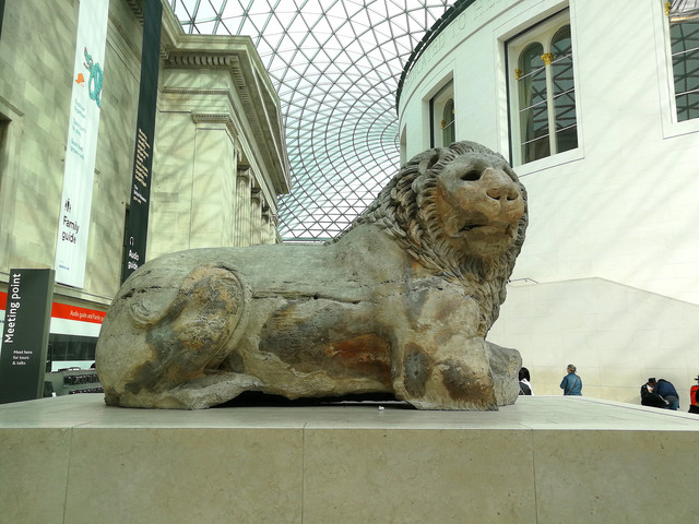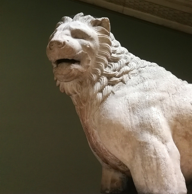 这头据说从土耳其西南海岸尼尔斯弄来的石头大狮子,由整块大理石雕成的,重达七吨以上,年代大约在公元前370-350年。大狮子曾盘踞在一个古代大家族墓葬顶部,俯视爱琴海两千多年,直到1858年被英国人发现并被搬到大英博物馆。