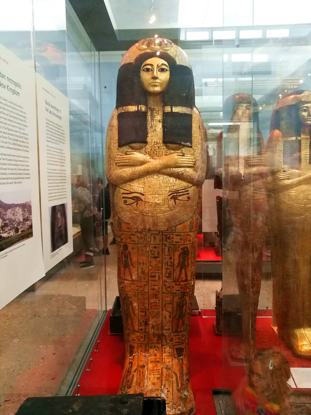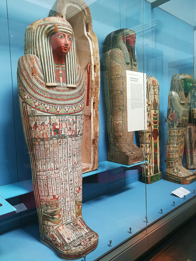 埃及木乃伊:最多、最精美、最原始的木乃伊。大英博物馆内一共收藏了约80具人类的木乃伊和动物(猫)的木乃伊,还有大量的葬礼用具;人形棺、石柩、盛放从木乃伊中取出内脏的罐子等,这些展品充分展示了古埃及文明中的丧葬习俗和文化。
