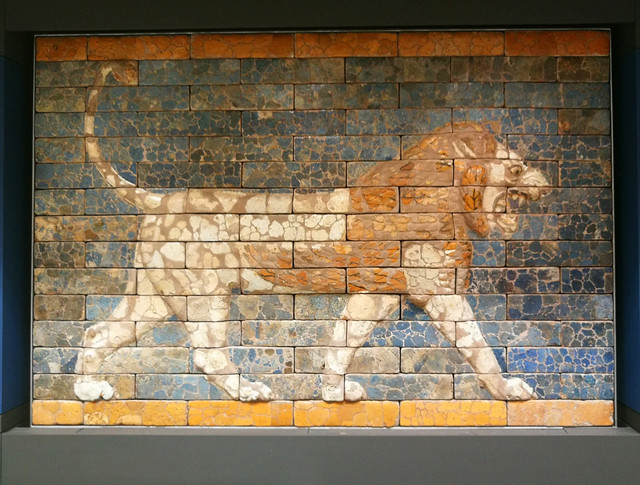 迈步狮纹镶板:来自公元前600年左右的古巴比伦城“游行大道”两侧的墙面上,据说为120尊狮子像之一。