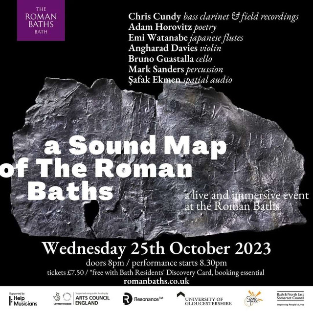 这场在大浴池旁进行的沉浸式现场表演将由世界级音乐家Angharad Davies(小提琴)、Bruno Guastalla(大提琴和电子乐器)、Emi Watanabe(日本长笛)、Mark Sanders(打击乐)和Chris Cundy(低音单簧管),以及最先进的IKO空间扬声器系统演奏。Chris、Adam和音乐家们将通过猜测、探查和声音干预的过程,密切倾听地下频率,并从我们的专家和历史学家那里收集资料,尽最大程度还原温泉女神苏利斯·密涅瓦本人的声音。