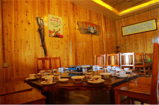 餐饮美食:山庄打造特色红色文化溶洞餐饮区,是广西第一家溶洞餐厅,也是兴安只此一家红色文化主题餐厅,让顾客在天然的大溶洞中就餐,通过视觉化的红色文化装修及服装风格,红军时期美食的菜品设计,让每个到来用餐的客人看到、学到、吃到、更感受到红军精神,潜移默化地传承红色文化。更有特色美食:印象老山界山庄烤鹅、蜂窝菌、守家桂林米粉、蜂子油茶。