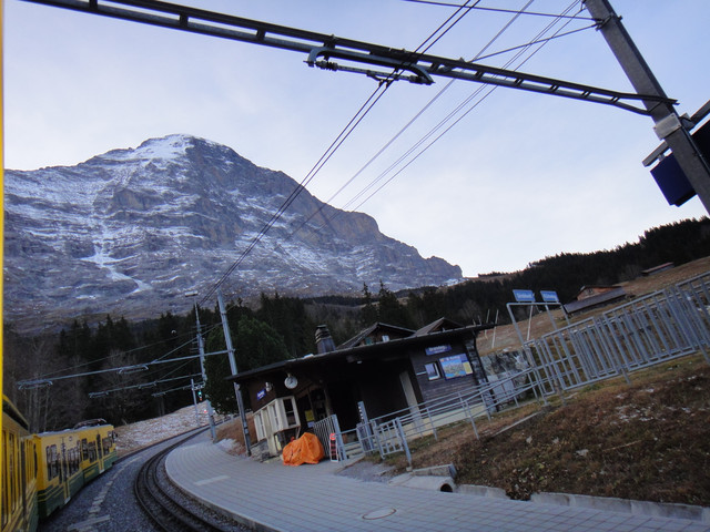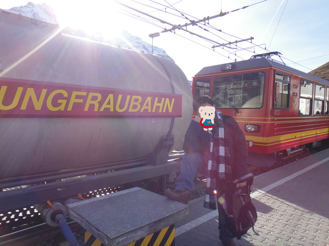 在Grindewald格林德瓦尔,乘坐上山的火车,本次团队游目的地:Jungfrau少女峰
