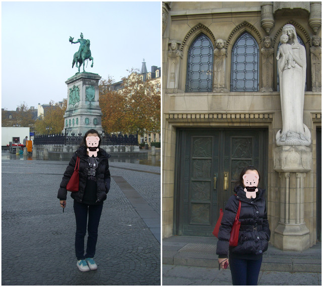 小镇很小,地标景点楼主认为是:纪尧姆二世广场,耶稣会教堂,卢森堡英雄纪念碑(与纪尧姆二世广场上的青铜像雕塑合影,在耶稣会教堂门前留念)
