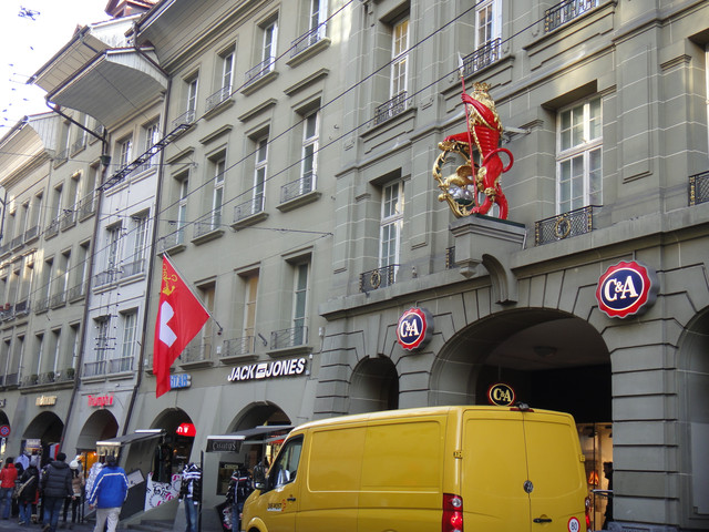 因瑞士在中世纪是苦寒的山区,过去瑞士兵是欧洲重要的雇佣兵,从街道上多处可见的猛兽标记,即可看出北欧人整体崇尚武力这一点,狮兄1号