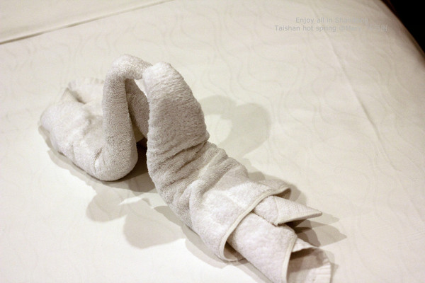 客房服务员精心准备的“欢迎毛巾”,扑面而来的小温馨。
