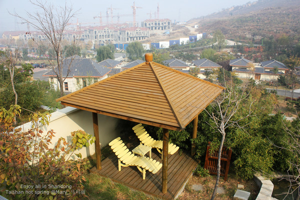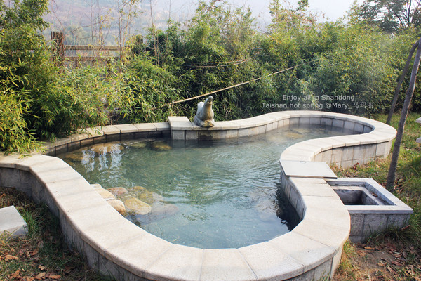 特别推荐的还是公共泡池。建在半山的无数个功能独特露天的泡池,俨然就是一道美丽的景致。泰山温泉城的自然景观丰富,亲身一游果真不同凡响,和每天在水泥都市中所见相比较,真是有世外桃源的感觉,来到这里是真正的放松了。泡在温泉里,面对就是一望无际的山景,感觉超棒,是那种在森林里泡汤的感觉。温泉水质滑润,整个人都很放松。
