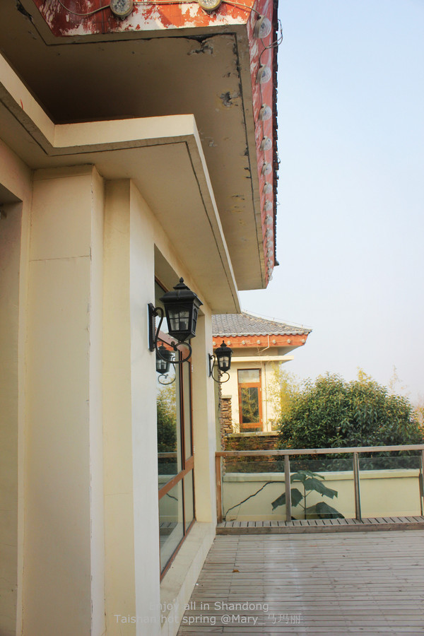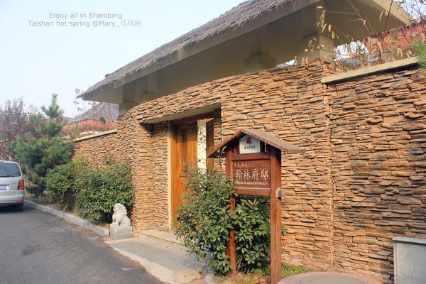 高速之后,经过几个小镇子,刚下过雨路不是很好走。不过这时候的乡村空气不是一般的洁净,还混合着泥土的味道,舒服极了。沿着小路,突然看到一大片的别墅群,感觉好惊喜。泰山温泉城就在眼前。