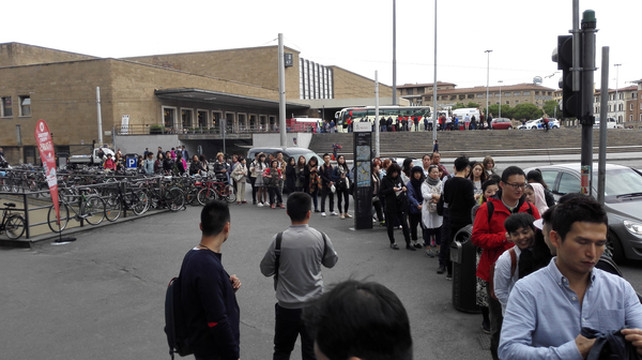 8:30赴到Firenze SMN火车站西侧的长途汽车站时,去the Mall (Outlets)的队已经过了130人了,车票往返10欧/人,8:50发头班车,大巴45人/车,第4班车是9:25发的。50分钟到达。