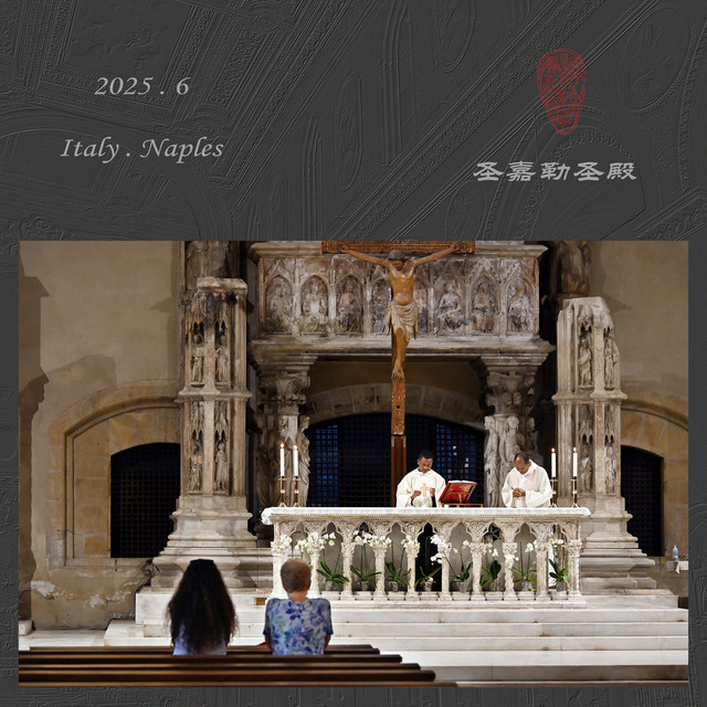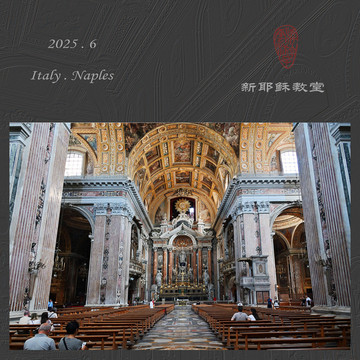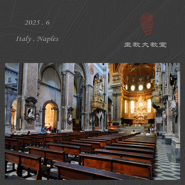 教堂不仅是西方建筑的典范,也融入了他们日常生活的重要场所,因为宗教是大多数西方人不可或缺的精神信仰。走在那不勒斯城区,时不时见到各种教堂,以我住的民宿为中心,出门就是圣多美尼克教堂和圣塞维诺小堂,步行五分钟范围内还有那不勒斯主教大教堂、圣嘉勒圣殿、新耶稣教堂等,以及好几个没有开放的不知名教堂。那不勒斯的多元文化也体现在教堂上,哥特式、古罗马式、巴洛克式等各种风格都有,外观各异,但都一样高大雄伟,内部也都富丽堂皇、恢弘壮观。