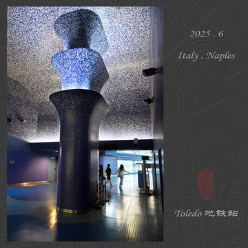 也有现代元素的打卡点,Toledo地铁站被美国媒体评为"世界十大最酷地铁站"之一,也成了旅游热门。我特意买了张地铁票进站见识一下,坐自动扶梯到很深的地下,蓝色马赛克贴满了墙壁和天花板,蓝绿变幻的灯光将顶上一个很深的椭圆形天窗洞营造出了深邃宇宙星空的感觉。不过要说这就入选世界十大了,那应该是很多中国的地铁站还不为西方人所知。