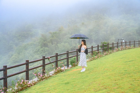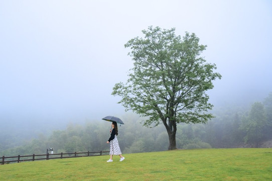 此番雨天登天姥山真的体会到了诗中意境,车子开到山顶停车场,眼前的山峰直插烟云,真的有种误入人间仙境的感觉。在山上的大草坪,配上近期很火的露营套,喝茶聊天,撑伞拍照。下雨天也未尝不是好事,颇有有一种初闻不识诗中意,此时已为诗中人的感觉。