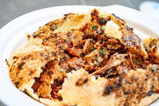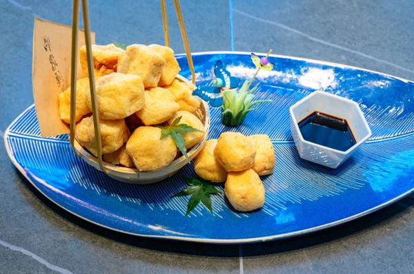 唐诗有杜甫,自然也少不了李白,这道“千金散尽还复来”就是出自诗仙李白的《将进酒·君不见》。菜品的本质是石城依云豆腐,外脆里嫩。油炸的豆制品一直都是我的最爱,加上李白的诗句,我怎么也忍不住多吃了几个。