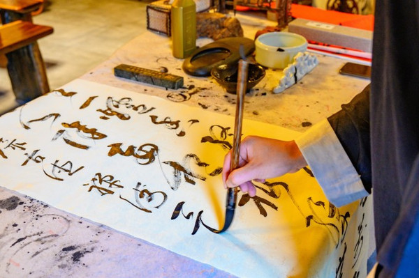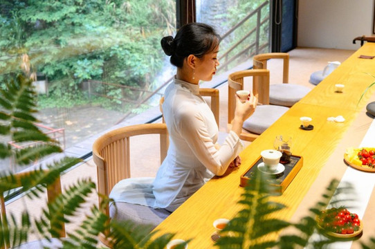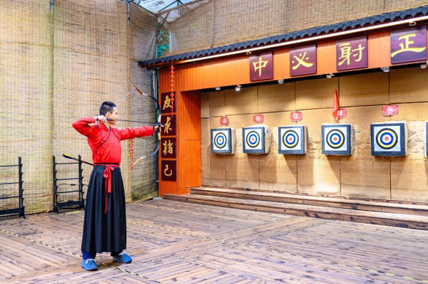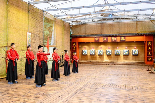 不过在七盘仙谷观景并不算是重点,然后我们也和来这里研学的孩子一起体验了多项传统文化。先是在山谷的草庐里跟着茶道老师品了“七杯茶”,感悟了一下人生。然后学习插花,学着与大自然相处。后面还有琴棋书画以及射圃等汉唐传统文化的体验。