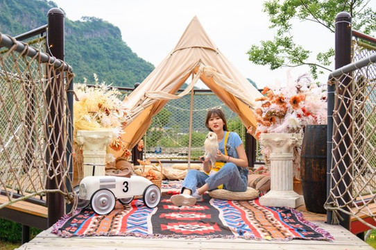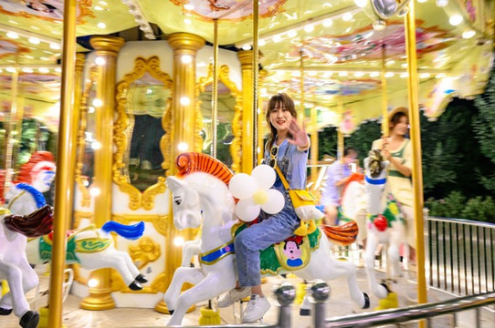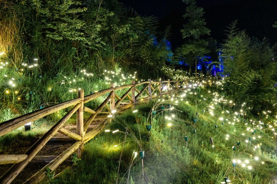 傍晚的时候走进乐园内,这里的布置也是紧跟热点,旋转木马、露营帐篷一应俱全。天黑了以后更是像置身一处奇幻森林,沿着半山腰的游步道,灯光配合声效仿佛让人穿越进了神秘的童话世界!移步换景,这个夏夜的体验很是丰富,白天和晚上都有这么好的体验,绝对是值回票价。