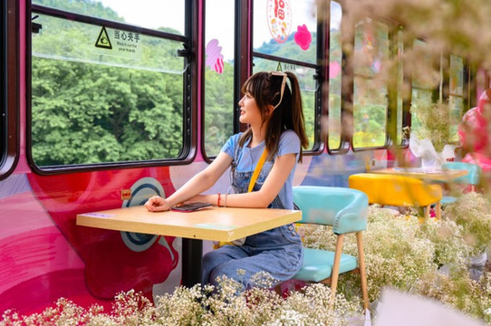 白天在这里我们乘坐了装满鲜花的小火车畅游在绿水青山之中,景区还摆放了一个网红大“绿马”,我立刻就拍了一张照片换成我的手机壁纸,特殊时期,守护绿码应该是每个人的心愿了吧?