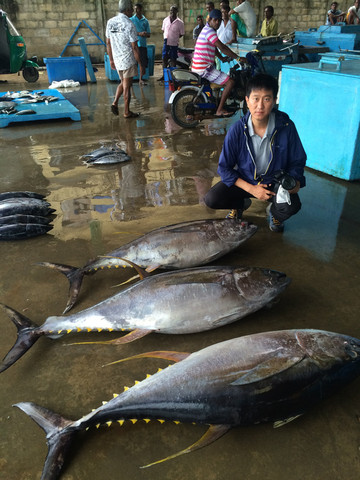 我1.81的身高,其实和面前的金枪鱼一样大,这些金枪鱼超过100斤的都出口到日本,日本人都收了,所以日本还是很有钱的。