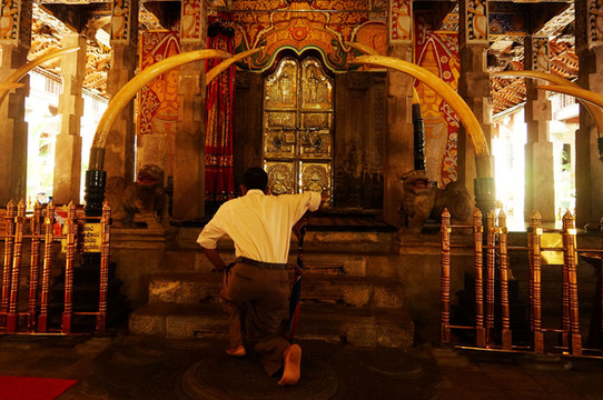 康提最有名气的莫过佛牙寺,相传这里供奉的是佛祖释迦牟尼牙齿的舍利,也是斯里兰卡的镇国之宝,不过你是休想看见佛牙的,因为一般不对外开放,我和导游聊天的时候他说只有在特殊的情况下,比如连续干旱的时候才拿出来示人,是乳白色的,我也就只能想象了,不过我对舍利子没有什么兴趣,我本身也不是什么佛教徒,我倒是对那些虔诚的信徒的表情和宗教的凝聚力折服。