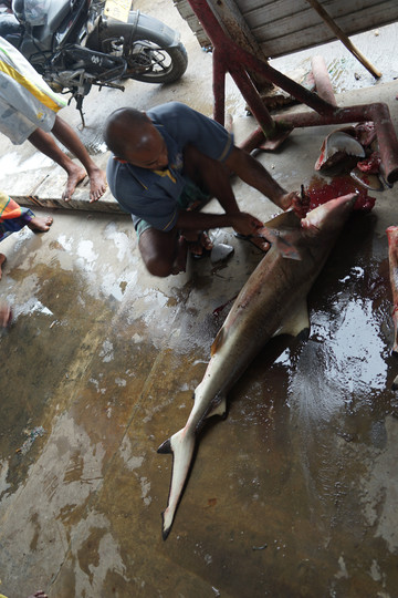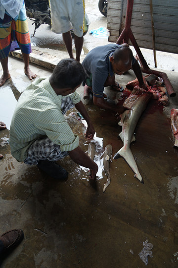 鲨鱼,是的鲨鱼,鱼肉不好吃就为了身上的鱼鳍惨遭杀戮,现实就是这么活生生的在我眼前上演,而且杀鱼的人说,主要都卖给中国人,因为中国喜欢吃鱼翅,而鱼翅真的有营养吗?我真的说不出来,我只能说我不知道也不去买,没有买卖就没有杀害,那些喜欢吃鱼翅的人,你们放过这些无辜的妈妈吧。