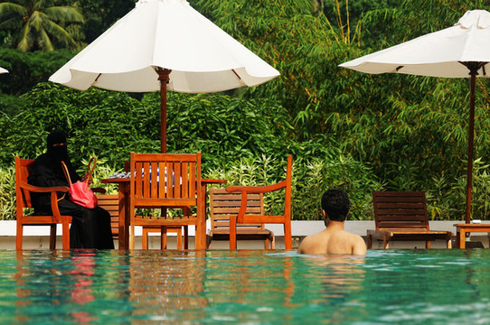 沙特来的一家人,尤其是妈妈这个防晒效果好啊。小姑娘不需要黑纱,因为年龄没到