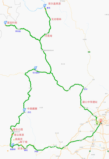 我们从成都出发走了阿坝+甘孜的逆时针环线,路线经过著名的熊猫大道和318,不仅能看美景,也能体验自驾的乐趣~总的路线图如下 ↓