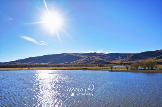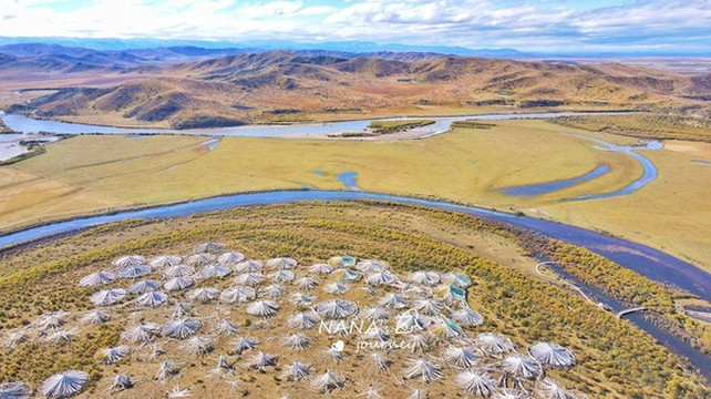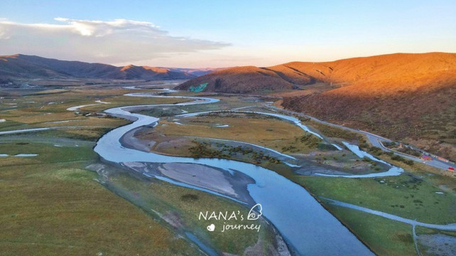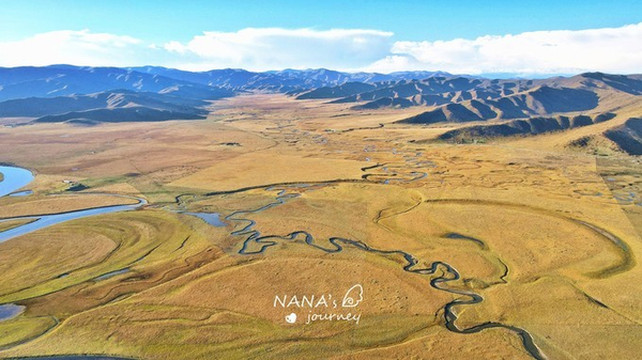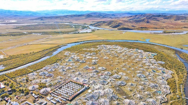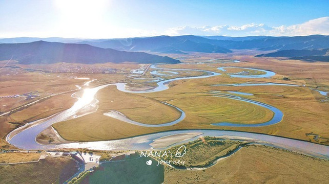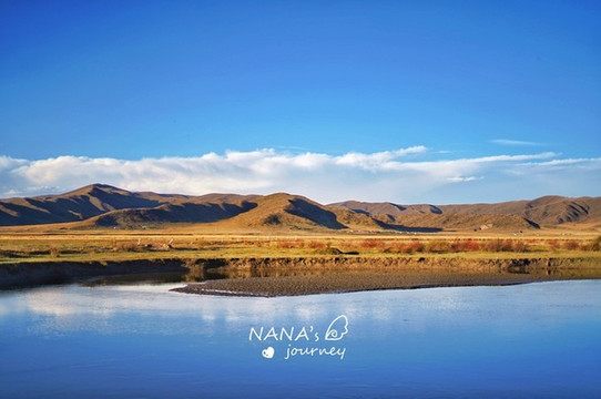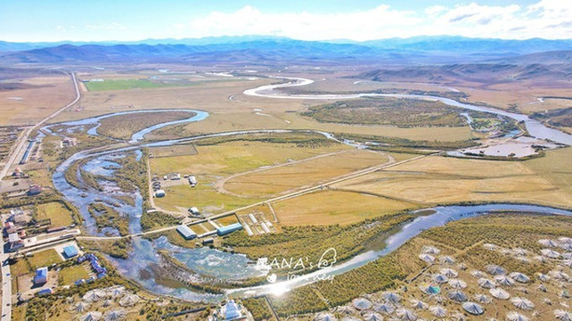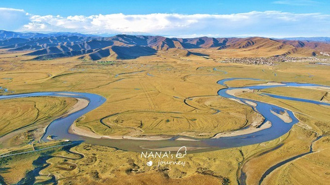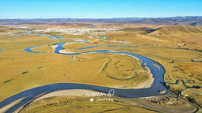 如蓝色丝带般蜿蜒在金色草原上的白河,
