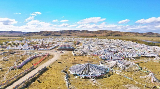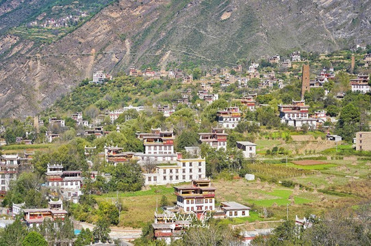 高山峡谷间,数千个藏式民居,