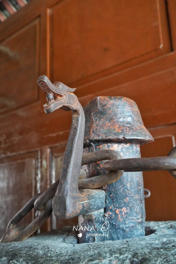 桥台位于桥身两端处,桥台内固定铁桩,铁链固定在两岸桥台落井铁桩里,锚固铁链落井之上建有桥亭。