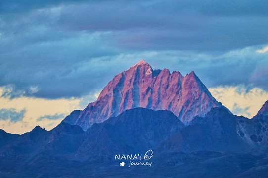 夕阳染红了雪山,直至最后一丝橙色的褪去……