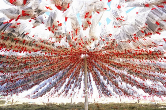 如花朵绽放在草原之上的经幡