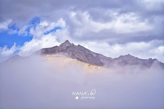 虽然云海翻滚,贡嘎含羞露了小尖,