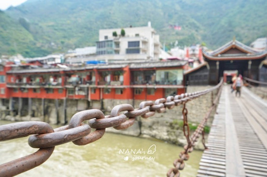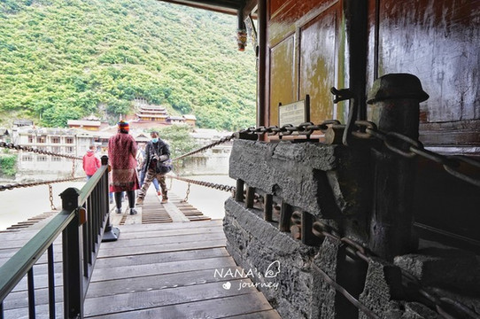 所有游客基本都是在桥上走个来回,我们也跟着大家一路小心的晃过河,小c自高反后再一次害怕起了铁索桥,大概感觉就是平衡力不够吧~