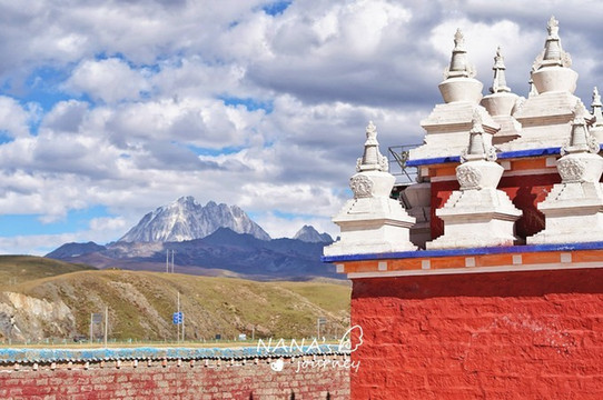 塔公金塔和雅拉雪山交相辉映。