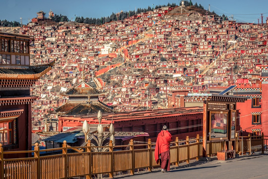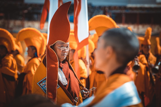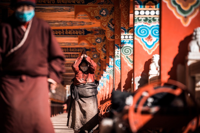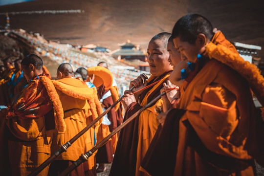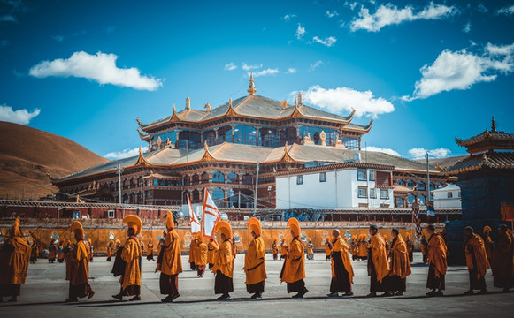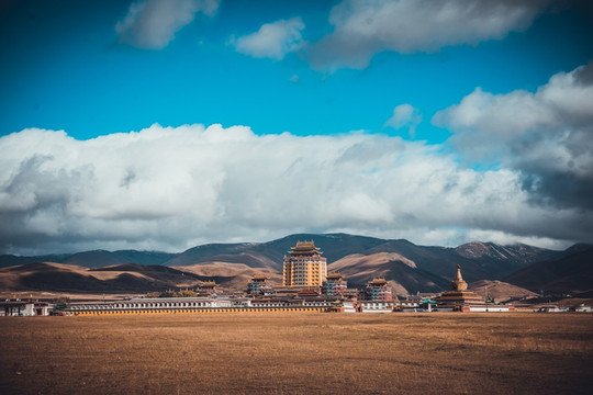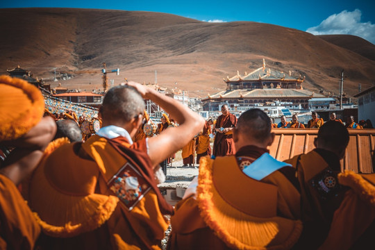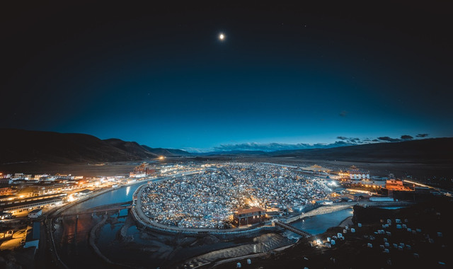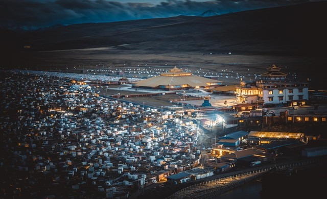 这算是我第五次来到塔公寺了,在每年7月中旬到8月初,塔公寺旁边的草原上举行一年一度的耍坝子活动,其间举办民间赛马活动和歌舞等节目,草原上一片各色帐篷,热闹非凡。