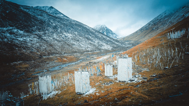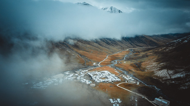 从塔公寺出来,我们继续前行,此时雪越下越大,能见度也越来越低,但却丝毫不能阻挡我们准备“登陆火星”的热情,仿佛在这样的朦胧中还更有探秘外星球的feel,此时似乎我们不再是驾驶着大狗,而是一台火星车,在荒无人烟的星球上行驶着。