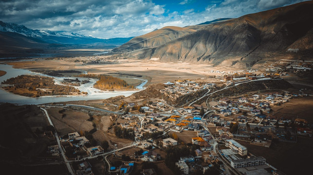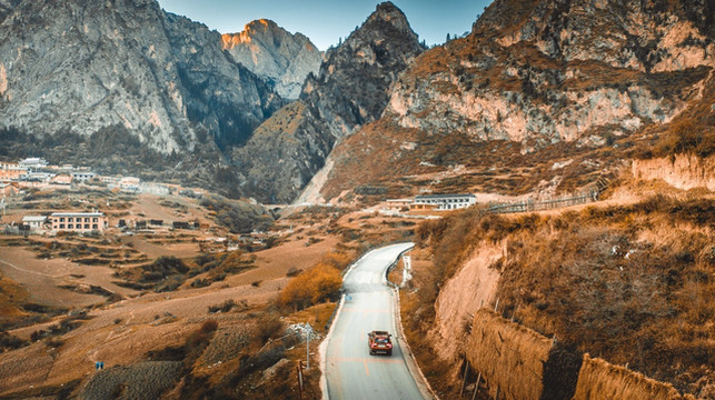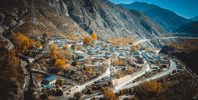 从雅家梗山顶下来,就离新都桥不远了,一路的河谷小镇风景在秋色之中非常养眼。