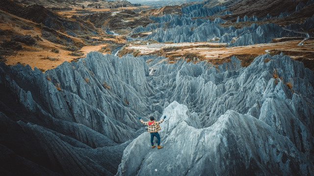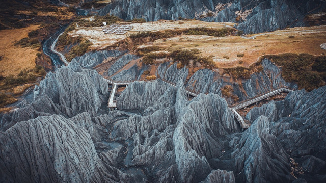 不过,318之所以会被人如此称道,也是因为它拥有着一些独一无二的风景,所以今天想要带大家看的是如同异域星球般的墨石公园,在秋色烂漫的草原上让那黑白相间的糜棱岩拼凑出最好看的“火星地貌”。