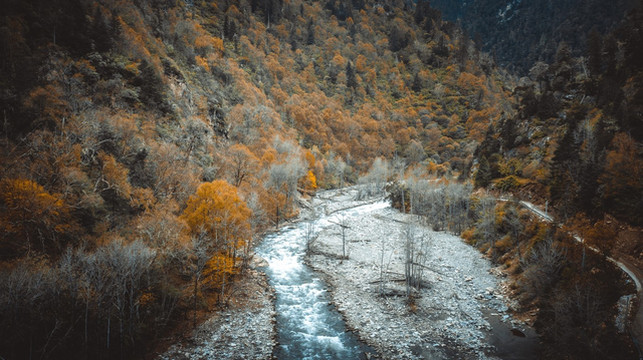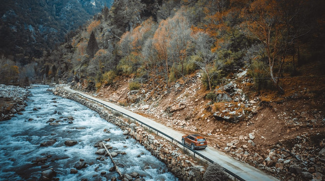 都说318国道上的新都桥秋色很美,其实从新都桥到鱼子西的这条县道更美,并且没有那么多的车流,独享眼前的风景,这种体验才更难得。