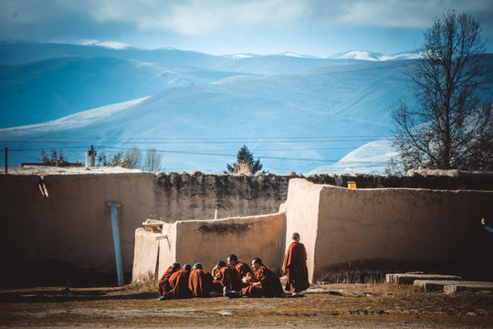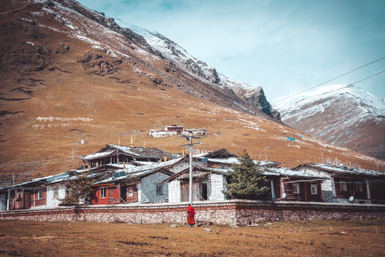 天快黑了,我们没有继续往上,就折返回东洼村,找了一个高处的民宿住下,趁着还有些天光出来走走,马路上村边放养的小黑猪悠闲觅食,田野里依然在劳作的藏民、寺庙里转经的老人、刚刚放学的小朋友在山下的篮球场里和喇嘛打着球,不由让人感到这方山水下的宁静祥和。