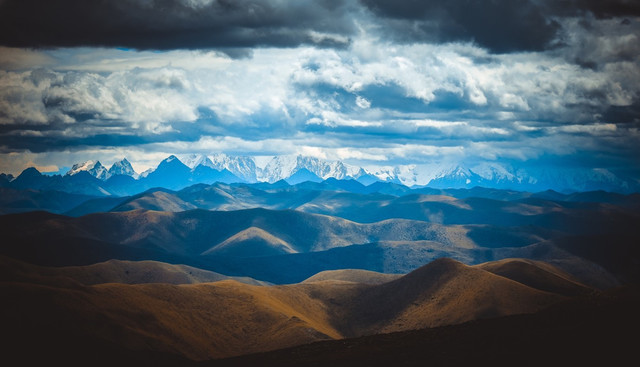 眼前所在的地方叫做【鱼子西】,距离新都桥镇不到20KM,因为道路崎岖难行,所以一直是一处被雪山隐藏的秘境,无垠的草原,蜿蜒的小溪,巍峨的雪山,山峦连绵起伏,藏寨散落其间,牛羊悠闲地吃草,更重要的,这里还是眺望蜀山之王贡嘎的绝佳观景台,只要你有一个好天气。