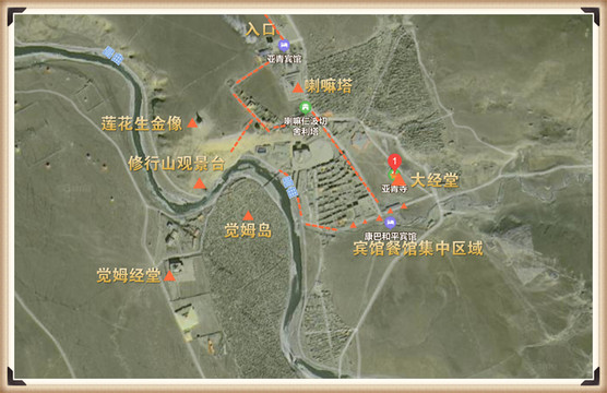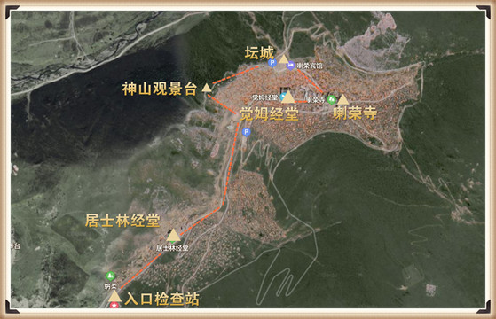 “靠山边栖息着一座寺院叫拉桑寺,在它下面是迭部人的村庄,房子挨着房子,还有小麦和青稞的梯田,在所有这些的后面,就是巨大的石灰岩山,郁郁葱葱的云杉和冷杉布满峡谷和坡地。我平生未见如此绮丽的景色。如果《创世纪》的作者曾看见迭部的美景,将会把亚当和夏娃的诞生地放在这里。”