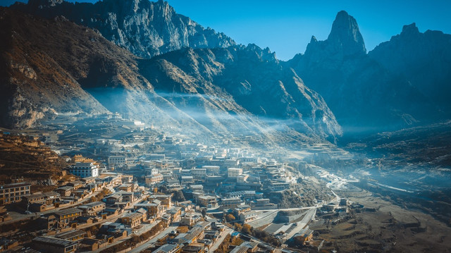 如果想要见证扎尕那最美的时候,那住上一夜是必须的,听民宿的老板说,几乎每天早上,岩壁之间都会有云雾缭绕,我很好奇原因,老板说,因为扎尕那在藏语中的意识是“神造出来的地方”,那些山那便是山神涅甘达娃的行宫,当然要“仙气十足”。