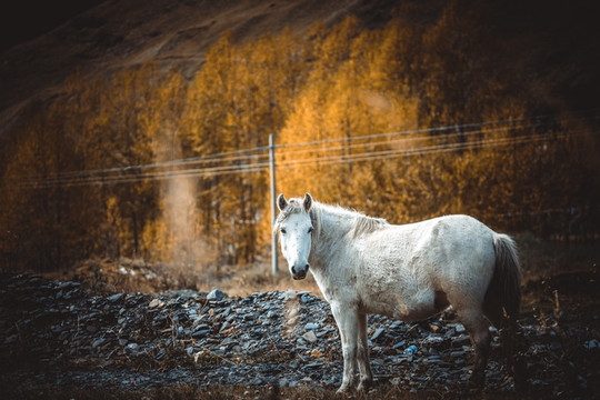 突然,一匹颇有象征意义的白马出现在了公路上,似乎是刚从电影《八佰》中跑出来的一样,然后甩了我们一个意味深长的眼神就又消失在了森林的尽头,就像我们永远追逐梦想,转瞬即逝。