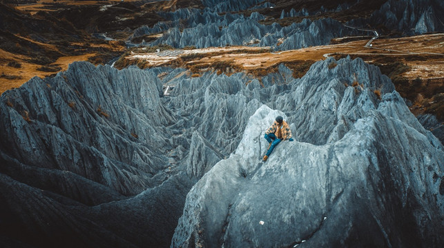 从鱼子西山顶下来,天气还是没有任何好转,云遮雾绕,看不到丝毫阳光,这样的天气对喜欢风光摄影的我们来说实在有些糟糕,但也没能影响到我们心情,吃完午餐,坐上大狗驱车继续北上,一路去往墨石公园。