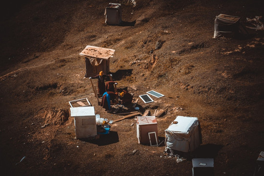 车至鱼子西时已是下午两点左右,直射的太阳光线照得人睁不开眼,三人纷纷戴上太阳镜以便遮挡紫外线的照射。毕竟是在高原上,站在这样热烈的太阳光下也不会立马觉得暖,直到背阳处才会发现阳光的可爱。早听说过高处不胜寒,若干年后,我再一次体会到海拔4000米的高冷滋味。