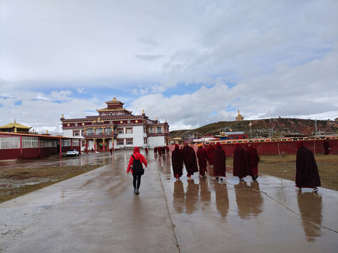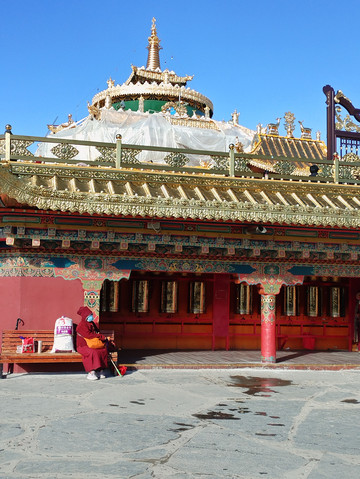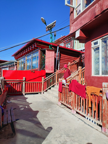 闲逛中遇到了很多觉姆,见到我们也不惊讶。阿李和同伴互相拍照时,一般也没人阻止。我们在红房子中的小巷子里互拍时,一位年轻漂亮的觉姆用普通话叫我们不要拍。当我们解释只拍我们自己时,她便不再阻止。总之,阿李感觉亚青寺的觉姆们对游客的态度比较友善——只要你不对着她们拍。