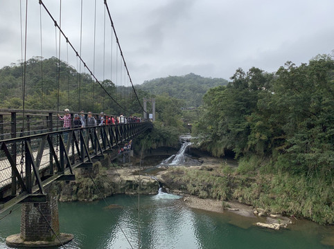 十分 摇晃的绳索吊桥下面,还时常有火车开过,这边原先是煤矿发源地。