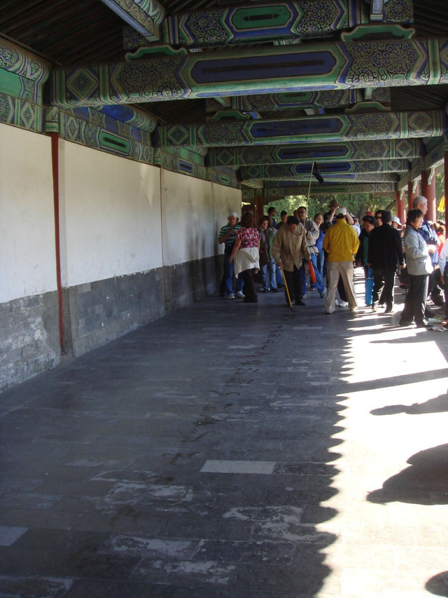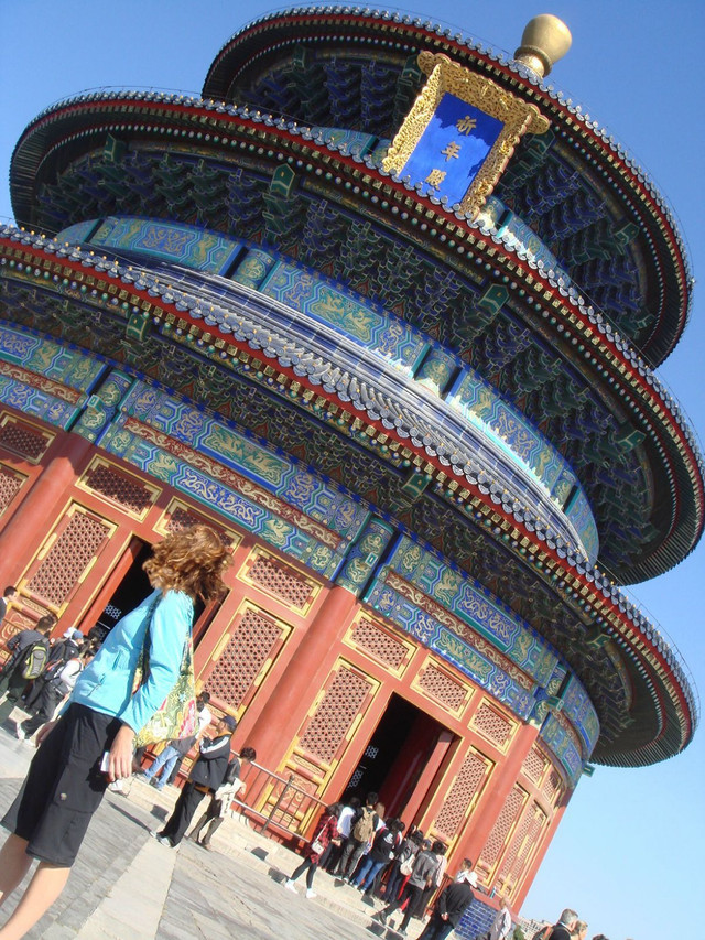 在故宫东南方,比故宫大4倍,是明、清朝两代帝王冬至日时祭皇天上帝和正月上辛日行祈谷礼的地方。天坛建筑布局呈“回”字形,由两道坛墙分成内坛、外坛两大部分。